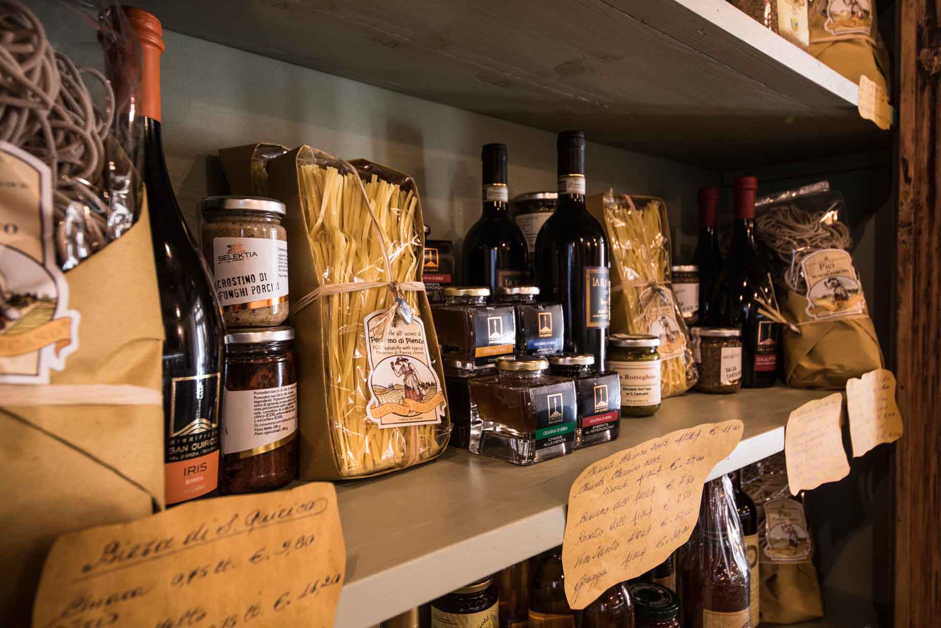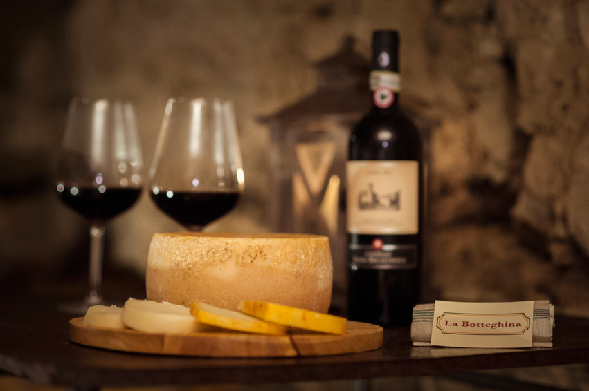 La selezione di formaggi è effettuata tra artigiani del gusto ed aziende casearie agricole in grado di produrre ancora secondo tecniche tradizionali. Tipico di queste zone è il pecorino delle Crete Senesi, un formaggio caratteristico che vanta una tradizione e lavorazione unica al mondo, prodotto con latte di pecora (pecore libere di pascolare in luoghi ricchi di erbe profumate). La crosta abbucciata, a seconda della durata della stagionatura varia dal colore giallo al rosso per il trattamento con olio o pomodoro.