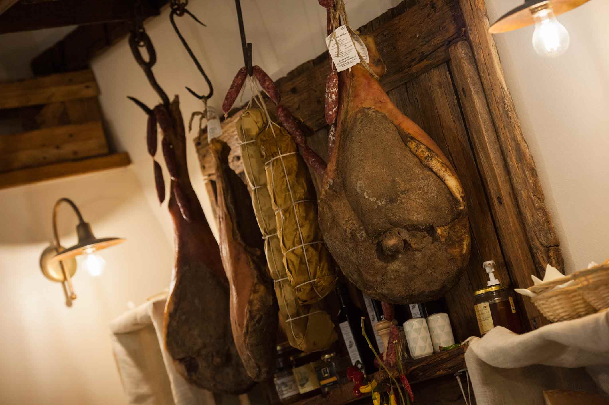 Proponiamo prodotti toscani di alta salumeria artigianale preparati come si faceva una volta, salati e stagionati con metodo naturale. Inoltre, proponiamo, affettati di salumi di razze autoctone quale la Cinta Senese, razza rustica particolarmente antica - che trae il nome dalla sua area di diffusione, le colline del senese - e probabilmente già allevata al tempo dei romani.
